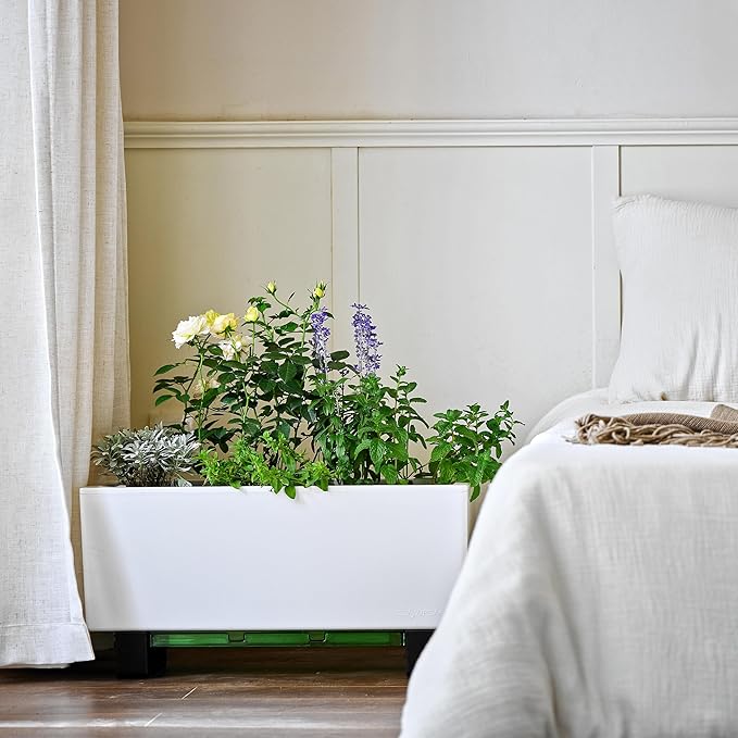 • Plants take what water they need when they need it due to the integrated self-watering system. Just top up the reservoir and your plants self-water. It’s so simple!