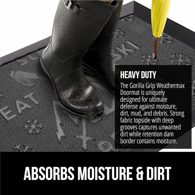 - THE ORIGINAL WEATHERMAX ALL SEASON DOORMAT: Gorilla Grip's Original WeatherMax doormat is built tough with a heavy duty, yet soft and flexible construction; deep grooves, beveled rubber border and retention dam help capture dirt, debris and moisture