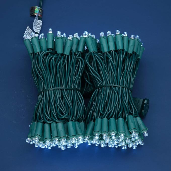 200 Count Cool White Wide Angle LED Christmas Lights, 66 ft Green Wire UL Certified Commercial Grade 5mm Holiday String Light Set (Cool White)