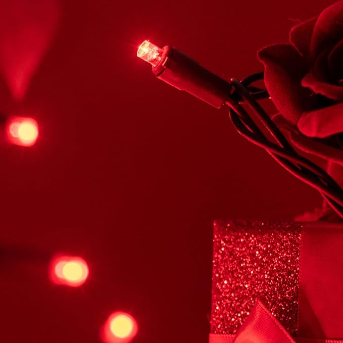 - Vibrant Red Glow β Featuring 200 red 5mm LED bulbs, with 4-inch spacing, this string light creates a cozy and inviting atmosphere with its vibrant red glow. The wide angle bulbs feature multi-angle light source technology, providing a wide and even distribution of light. The independent light heads allow the light to diverge at multiple angles, ensuring that no corner of your Christmas tree or garden goes unnoticed.
