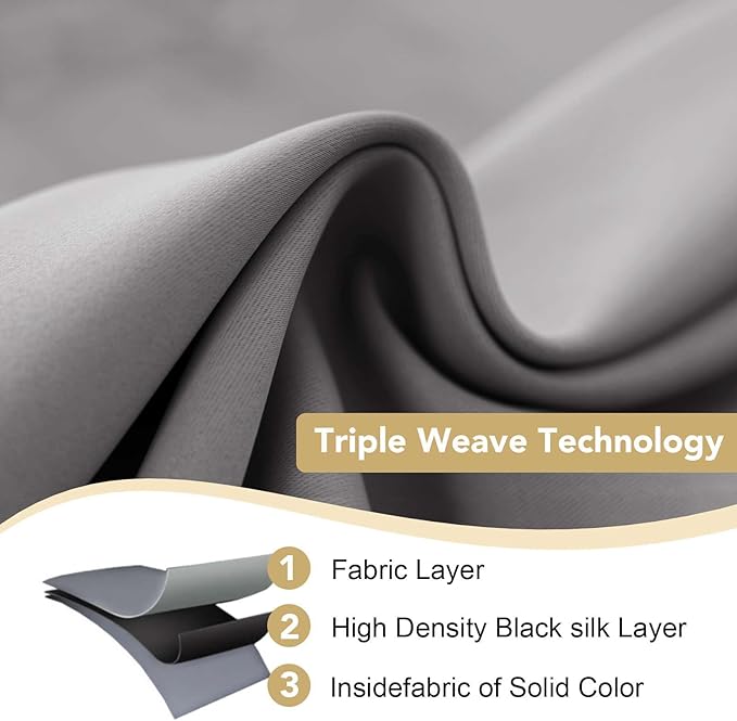 - MULTIPLE FUNCTIONS: These premium blackout curtains are made by innovative technology specially yarn. Ultra soft, super smooth and excellent silky. High performance on thermal insulated, room darkening, noise reducing, energy saving / efficiency and privacy protection