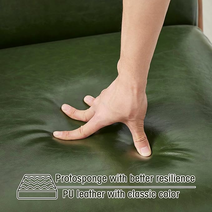 Glitzhome Mid Century Hunter Green Accent Armchair, Single Reading Armchair PU Leather Lounge Chair with Walnut Ruberwood Frame