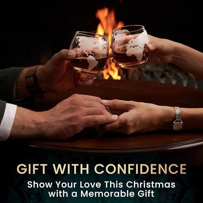 Globe Whiskey Decanter Gift Set by Royal Reserve | Etched World Map Globe Decanter 29 oz 850 ml with Glasses for Bourbon, Liquor – Whiskey Gifts for Men Dad Boyfriend Husband