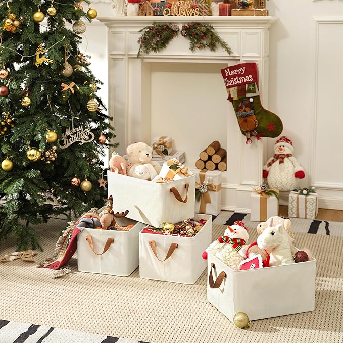 GRANNY SAYS Closet Storage Baskets, Collapsible Fabric Storage Bins with Metal Frame, Clothes Organizer Bins, Large Baskets for Shelves, Ivory, 4-Pack