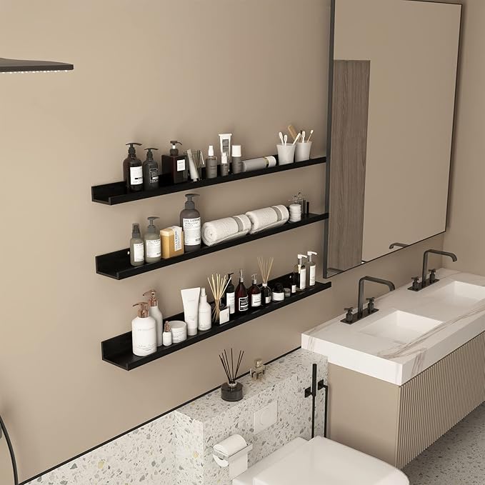 - Easy to Install: Comes with required hardware of anchors, screws, mini lever, instruction and pre-drilled holes, mounting the long shelf to the wall is easy.