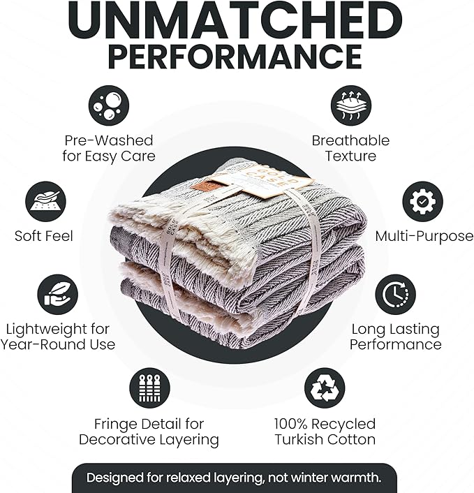 - LIGHTWEIGHT LAYERS FOR RELAXED MOMENTS: Woven from 100% recycled Turkish cotton, this breathable and cute throw blanket adds a soft, textured touch to your space; made for layering on the couch, tossing over your shoulders, or adding a laid-back look to your decor