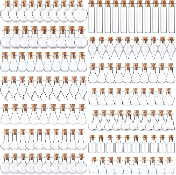 - Sufficient and Diverse: there are 140 pieces of small glass bottles with cork, in 14 various shaped styles, such as star, inclined heart, chili, water drop, square, single pointed, heart, sphere, flask, 10 pieces for each style; The abundant quantity and attractive styles can meet your various demands; Please note that Individual breakages may also occur during the long transit, even if protective measures have been taken
