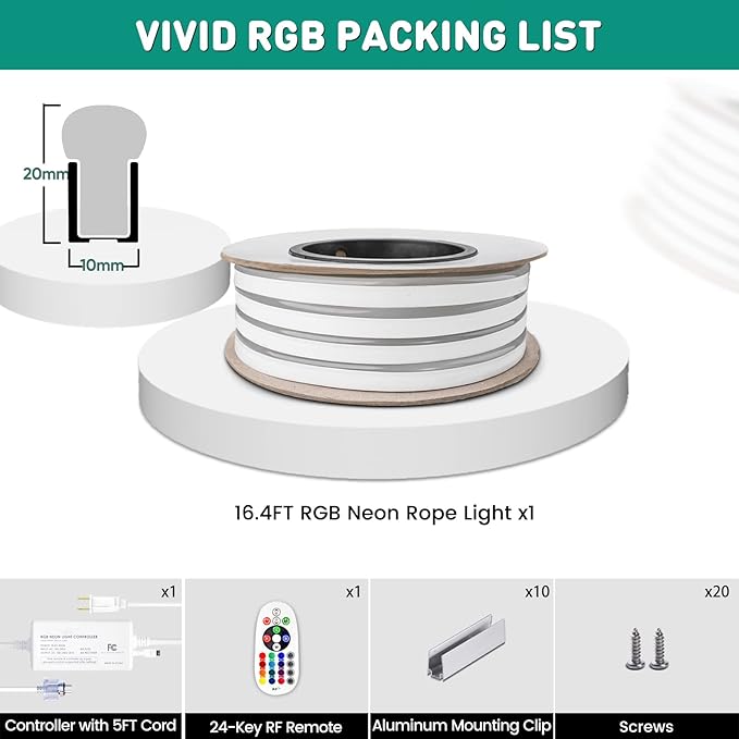 - Remote Sync & Command--Control up to 4 neon ropes with one remote! Effortlessly pair multiple strips for perfectly synchronized colors, effects, and brightnessβideal for large-scale setups. The 24-key RF remote controls 16 static colors, speed, and 4 dynamic modes within a range of 66 ft. NOTE: This is NOT color chasing Light.