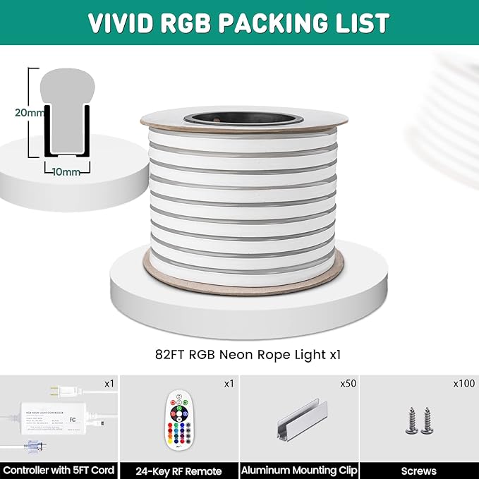 - Remote Sync & Command--Control up to 4 neon ropes with one remote! Effortlessly pair multiple strips for perfectly synchronized colors, effects, and brightnessβideal for large-scale setups. The 24-key RF remote controls 16 static colors, speed, and 4 dynamic modes within a range of 66 ft. NOTE: This is NOT color chasing Light.