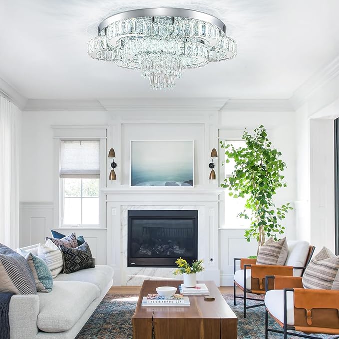 - -Wide Applications: itβs perfect to put this flush mount chandelier in large space or low ceiling such as your living room, dinning room, kitchen, bedroom, closet, foyer, porch, farmhouse, hallway, hall, study etc.