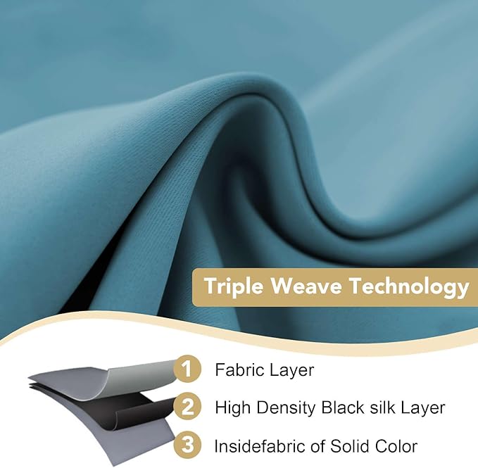 - MULTIPLE FUNCTIONS: These premium blackout curtains are made by innovative technology specially yarn. Ultra soft, super smooth and excellent silky. High performance on thermal insulated, room darkening, noise reducing, energy saving / efficiency and privacy protection
