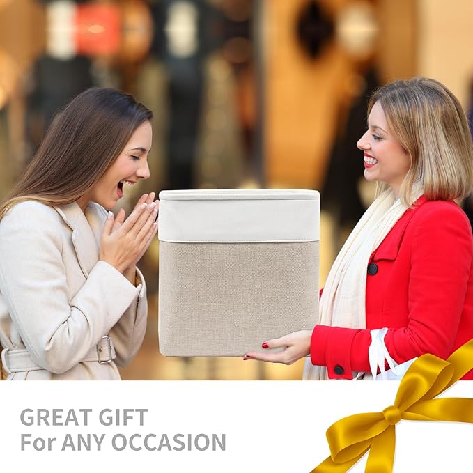 13x13 Cube Storage Bins, Collapsible Fabric Storage Box, 4 Pack Closet Baskets with Handles for Organizing, Shelf, Toys, Clothes, Home, Office, Nursery (Beige&White)