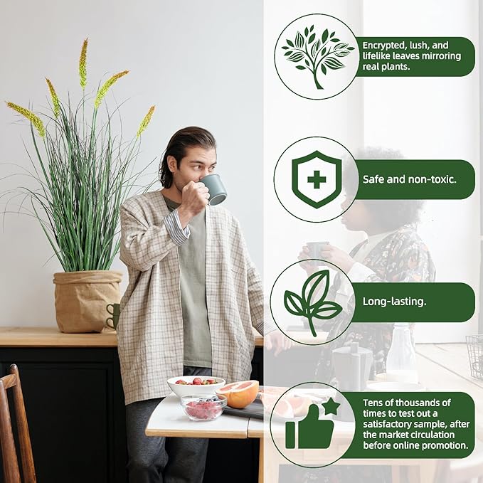 - 🌾WORTH DECORATING IN BULK:Artificial Tall Grass Plants lush branches and well-arranged leaves, gently stroked with a lifelike texture, make this artificial tree a stunning addition to any room, table, or outdoor entrance,potted plant bringing a touch of natural vitality and beauty to your surroundings.