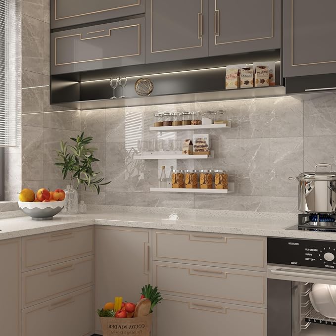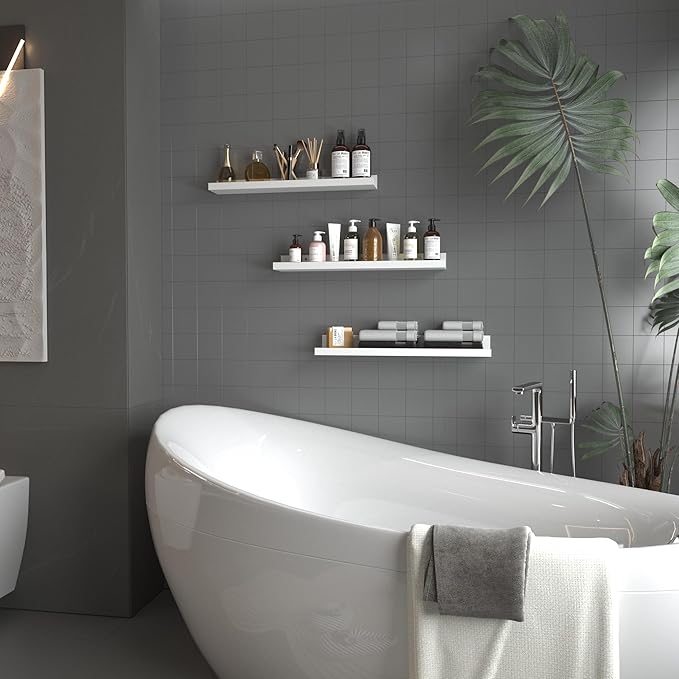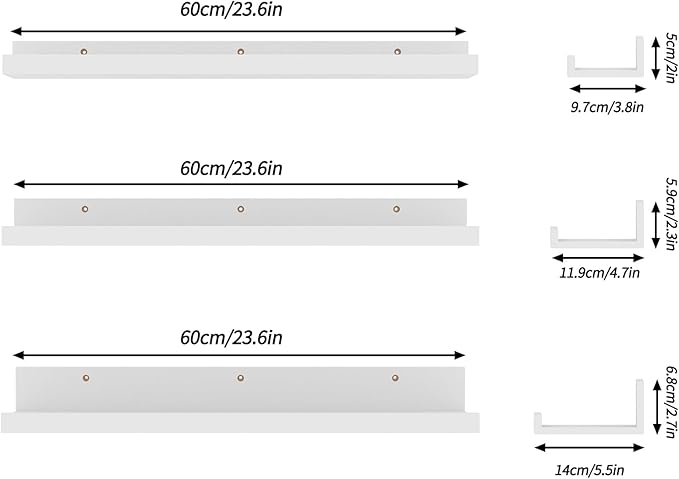 - Beautiful hanging shelves: These white wall-mounted ledge shelves are both stylish and sturdy, made of high-quality MDF board. The wood grain appearance adds a delicate touch to your room decor, making it more fashionable and modern.