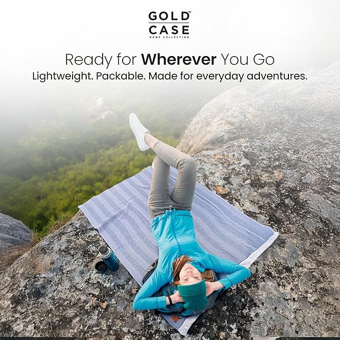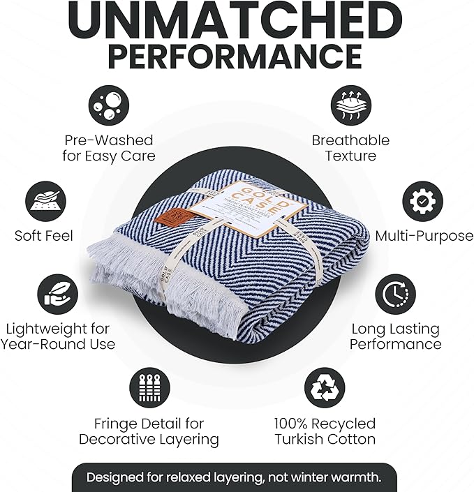 Gold Case Throw Blanket for Couch – 100% Recycled Turkish Cotton Blankets & Throws – Elegant Decorative Throw Blankets for Living Room Sofa – Woven Throws for Couch – Elegant Navy Blue – 50x60