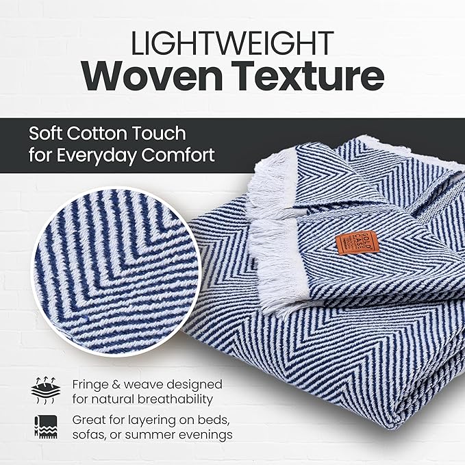 - LIGHTWEIGHT LAYERS FOR RELAXED MOMENTS: Woven from 100% recycled Turkish cotton, this breathable and cute throw blanket adds a soft, textured touch to your space; made for layering on the couch, tossing over your shoulders, or adding a laid-back look to your decor