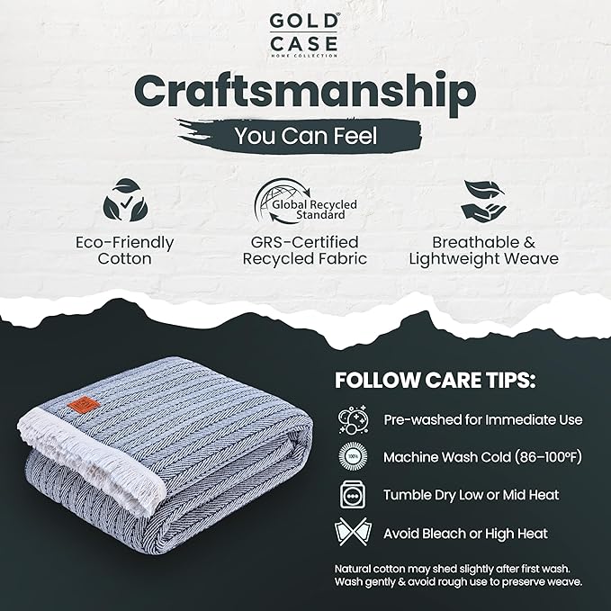 - CRAFTSMANSHIP BEYOND COMPARE: Thoughtfully woven from recycled cotton, this woven throw blanket is GRS-certified for sustainability; each breathable blanket is responsibly crafted with a breathable weave and finished edges that help minimize fraying