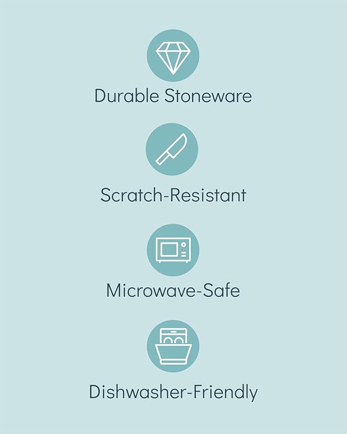 - ✅ Pure Joy & Culinary Delight: Crafted from solid stoneware with a high-fired, glazed & scratch-resistant surface, this dishes set for 4 is for those who cherish life's finest moments and appreciate top-notch quality in their kitchen plate set
