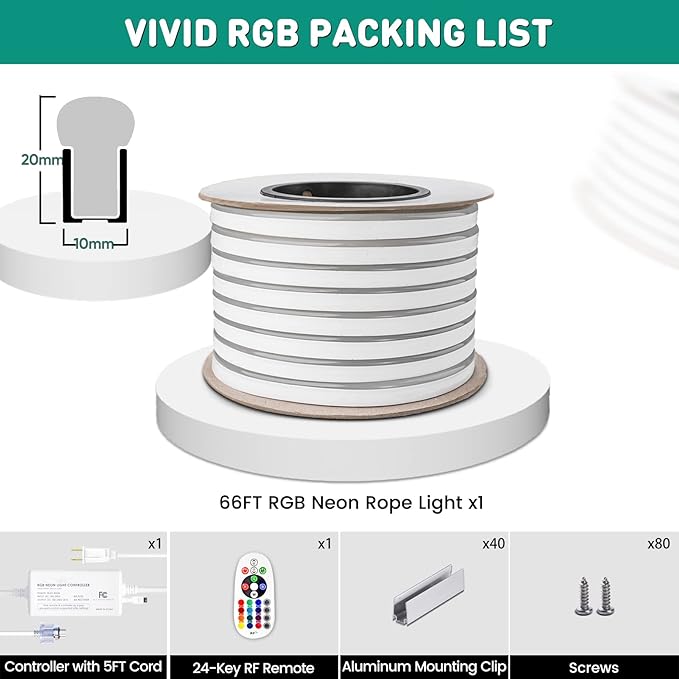 - Remote Sync & Command--Control up to 4 neon ropes with one remote! Effortlessly pair multiple strips for perfectly synchronized colors, effects, and brightnessβideal for large-scale setups. The 24-key RF remote controls 16 static colors, speed, and 4 dynamic modes within a range of 66 ft. NOTE: This is NOT color chasing Light.