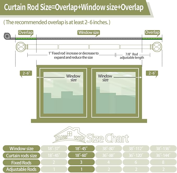 - Freely Adjustable Single Curtain Rod:The 1" fixed rods are attached by connectors and screwed in one by one with aligned threads. Adjustable single curtain rod can be enlarged or reduced in size by increasing or decreasing the number of rods each about 16 inches. Also the 7/8" telescoping rods at each end are easy to adjustable in curtain rods length to fit your window size. So no more worrying about differences in window size.