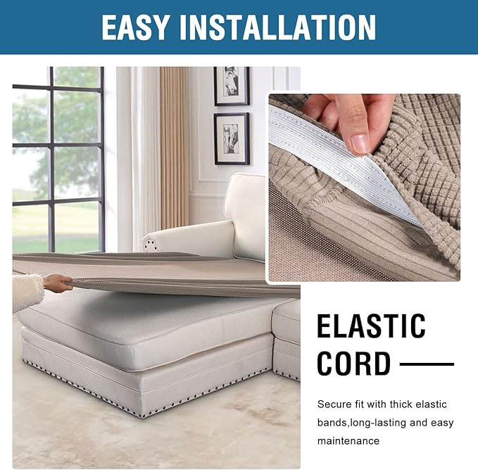 - NON SLIP: Effortless for installation (guide photos on selling page), sewn with thick elastic loops to cover the bottom edges. It is easy to install and take off, making your home more harmony, high recommended for both leather and cloth furniture
