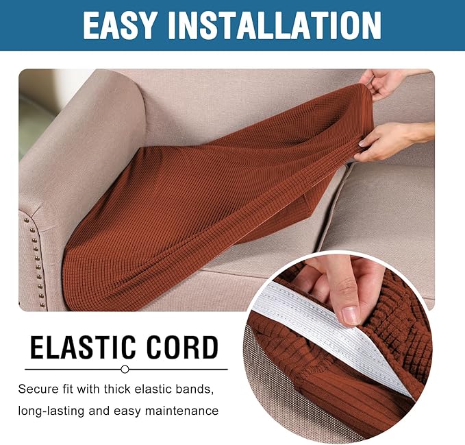 - NON SLIP: Effortless for installation (guide photos on selling page), sewn with thick elastic loops to cover the bottom edges. It is easy to install and take off, making your home more harmony, high recommended for both leather and cloth furniture