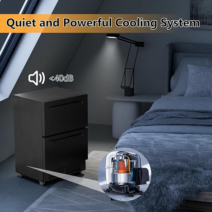- Dual Drawer Design and Bottom Pulley: The drawers of this undercounter refrigerator feature a robust load-bearing capacity and convenient dual slide rails for easy access to your beverages. The bottom pulley design allows effortless mobility and adapts to various settings.