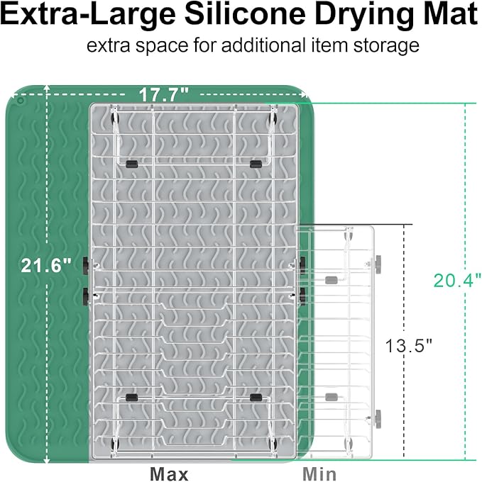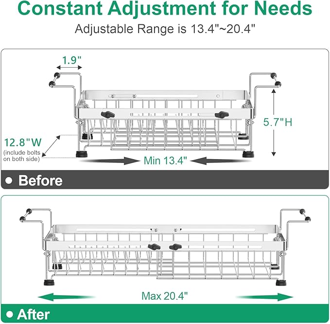 - Space-Saving 3-in-1 Dish Rack: Transform your small kitchen space with the GSlife expandable dish drying rack! Easily adjust the length (13.4" to 20.4" L) to perfectly fit in sink, over sink (up to 22"), or neatly on your countertop with drying mat. Ideal for apartments, dorms, or compact homes where every inch counts.