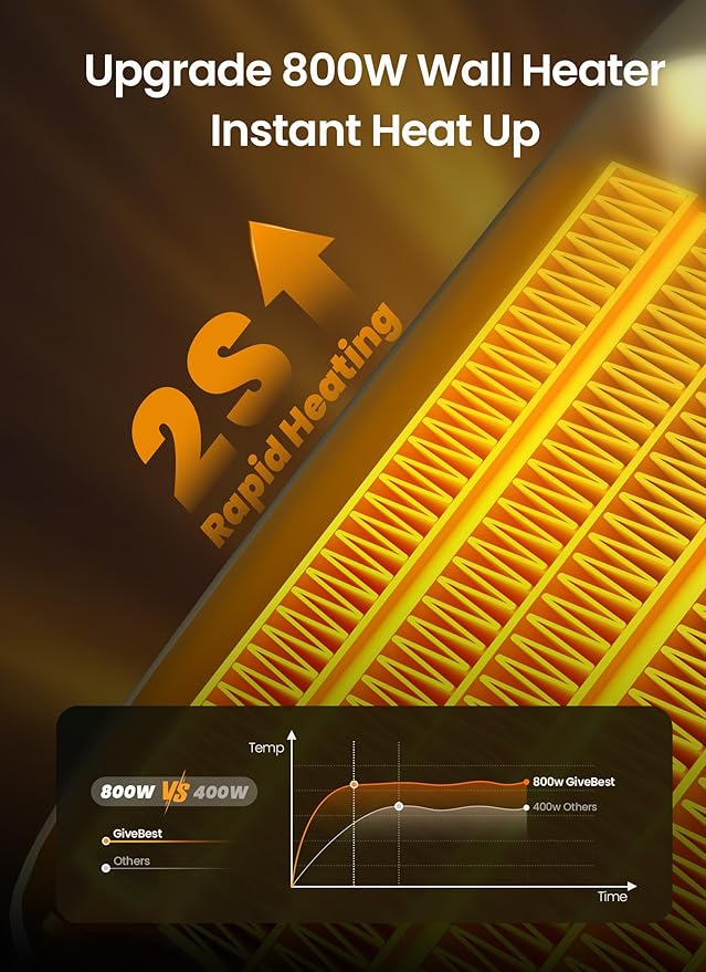 GiveBest 800W Plug-in Wall Space Heater With Remote, Small Outlet Heater With Adjustable Thermostat, 12H Timer, LED Display for RV, Home Office, Bathroom Indoor Use