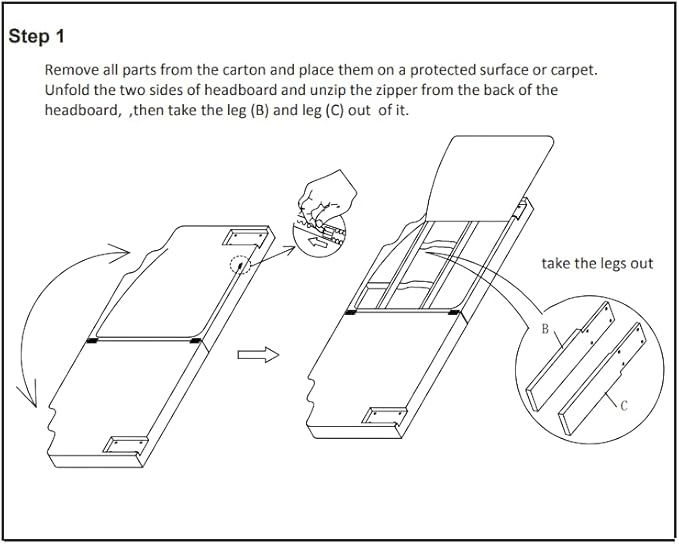 • Easy Assemble: Tools included for easy assembly . Remind: Legs are stored in the back of headboard,unzip to find them.