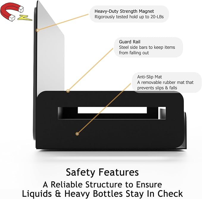 - HASSLE-FREE INSTALLATION - Say goodbye to complicated setups. Our magnetic shelf for fridge requires no drilling or assembly, allowing you to effortlessly attach it to any metal surface in seconds