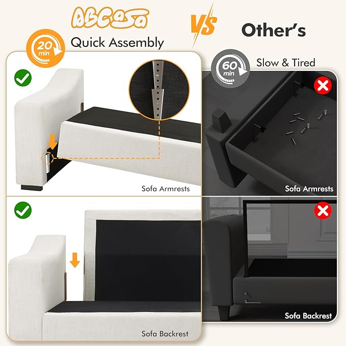 - EASY ASSEMBLY - The corner sectional couch comes in several packages that may arrive separately on different days. Follow our clear instructions,it will only take you about 30 minutes to set up the sofa. If you have any issues after purchasing the product, please contact us,we are always here to help.