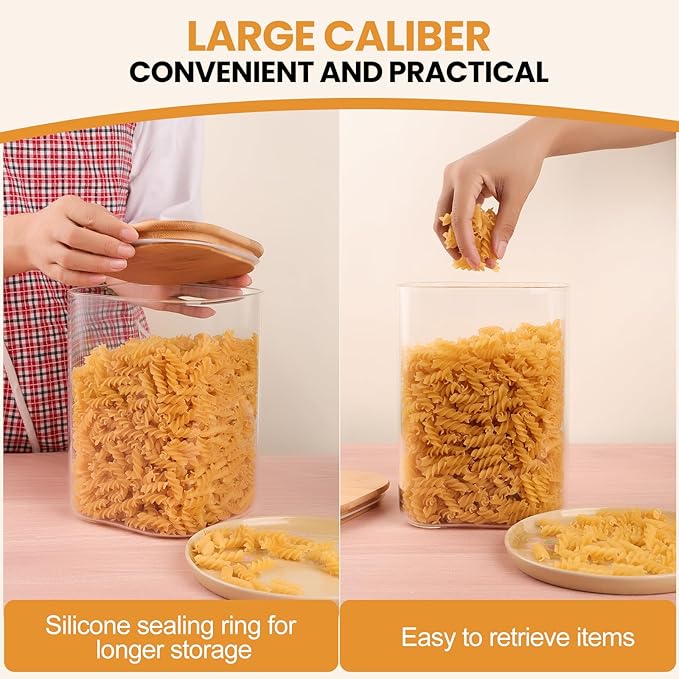 - Versatile Size and Set: This square glass jars is the perfect solution for storing a variety of items. From grains and pasta to nuts and spices, these jars offer ample space while maximizing shelf or cabinet space. Keep your kitchen neat and tidy while adding a touch of elegance