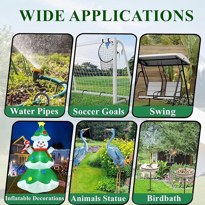 - 【MULTIPLE APPLICATIONS】These ground stakes are designed for the secure fastening of a diverse array of outdoor items.These rebar stakes can be used as chain link fence stakes, ground anchors, tent stakes, trampoline stakes, canopy stakes, trap stakes, yard stakes for decorations, swing set anchors and more to anchor outdoor equipment you want.