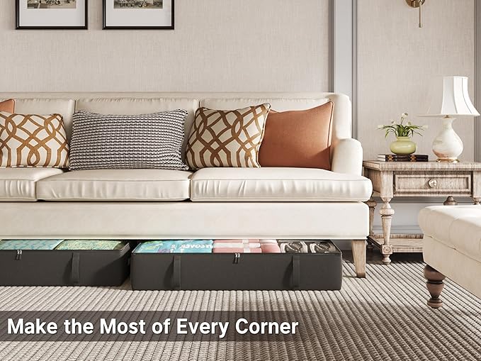 - Versatile Under Bed Storage Bins - 2 Pack of Under bed storage containers are designed for blankets and pillows, out-of-season clothes and shoes, books and toys, these storage containers have a sturdy construction and can handle all types of storage needs