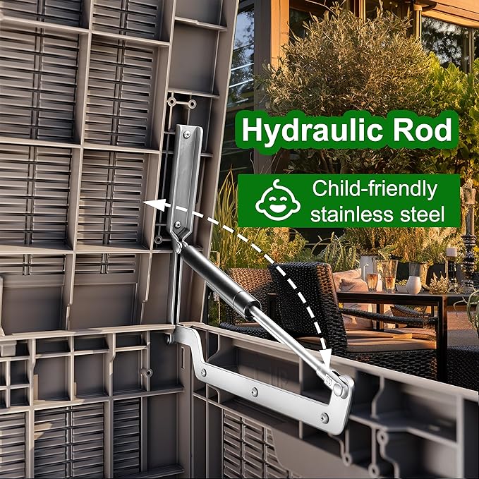 • EASY TO USE: The deck storage box is designed for convenience with built-in handles on both sides, allowing easy lifting and movement. Plus, for added security, you can install a password lock/small lock (not included) on the top cover