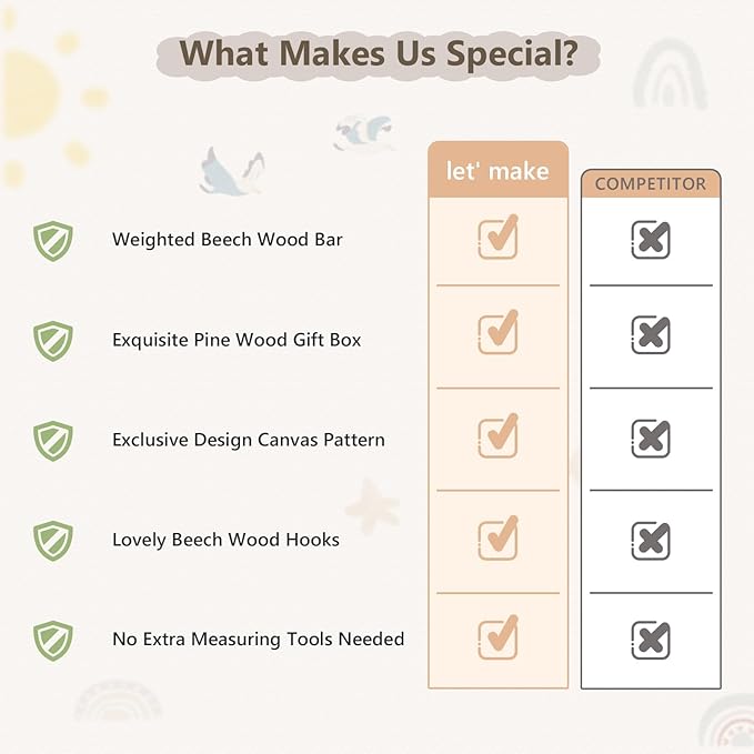 - 🌈𝑪𝒉𝒂𝒓𝒎𝒊𝒏𝒈 𝑫𝒆𝒔𝒊𝒈𝒏 𝑭𝒐𝒓 𝑾𝒂𝒍𝒍: Adorned With Hand-Painted Rainbow And Eucalyptus Designs On Durable, Waterproof Canvas, Matched With Rainbow/Bird Beechwood Hooks. The Soothing, Neutral Color Make Our Growth Chart Perfect Fits Both Little Boys And Girls Nursery Decor, Adding A Warm Touch To Your Home While Complementing Bohemian-Style Decor.