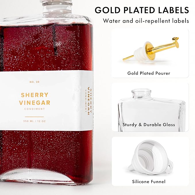 • PREMIUM GOLD LABELS FOR A LUXURIOUS LOOK: The set includes 36 high-quality, waterproof gold labels, ensuring an organized, elegant, and stain-free cooking oil container kitchen setup.