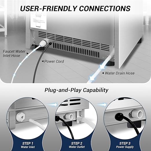 - Seamless Setup and Automated Operation: Get ice production underway in minutes with our all-inclusive ice maker. Automatic water filling and draining eliminate hassles, ensuring your machine is operational straight from the box.