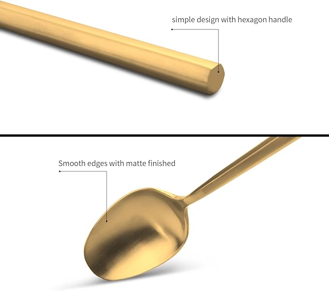 • 【APPEARANCE AND DESIGN】Luxury gold color and matte polish, unique design with hexagon handle, dishwasher safe