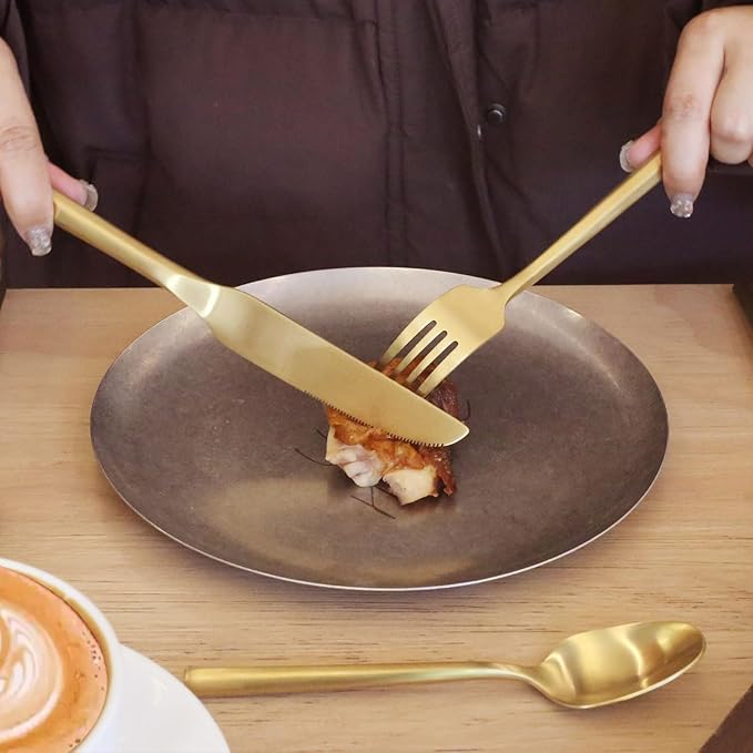 • 【HOW TO CARE】Please use a mild dish soap and warm water to clean the silverware. Avoid using steel wire brushes, hard sponges, or any other abrasive cleaning tools, as they can cause damage to the flatware.