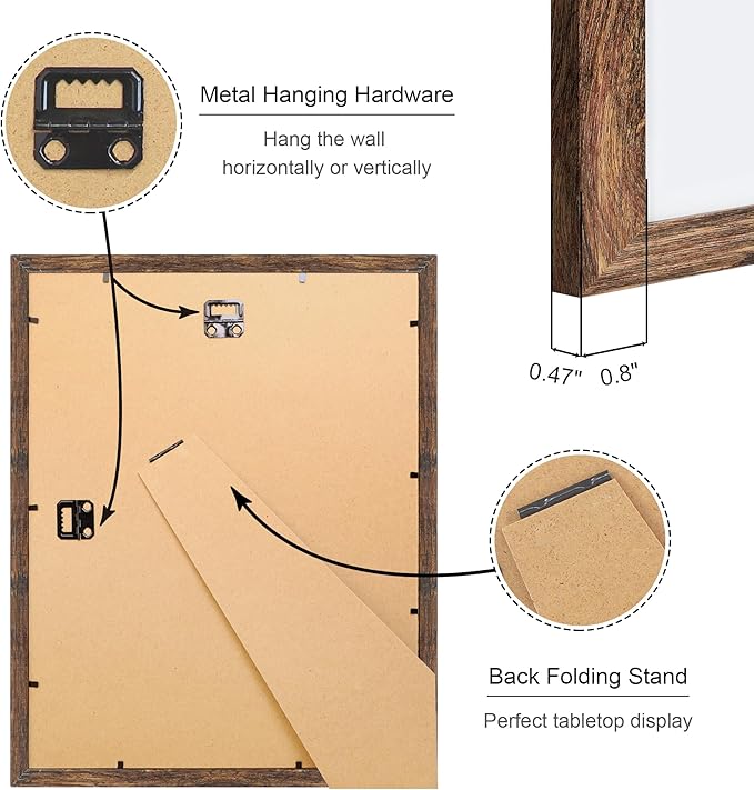 • Multiple Display:11 by 14 photo frames come with hanging hardware, which can be hung horizontally or vertically on the wall, or displayed on the tabletop through the stand