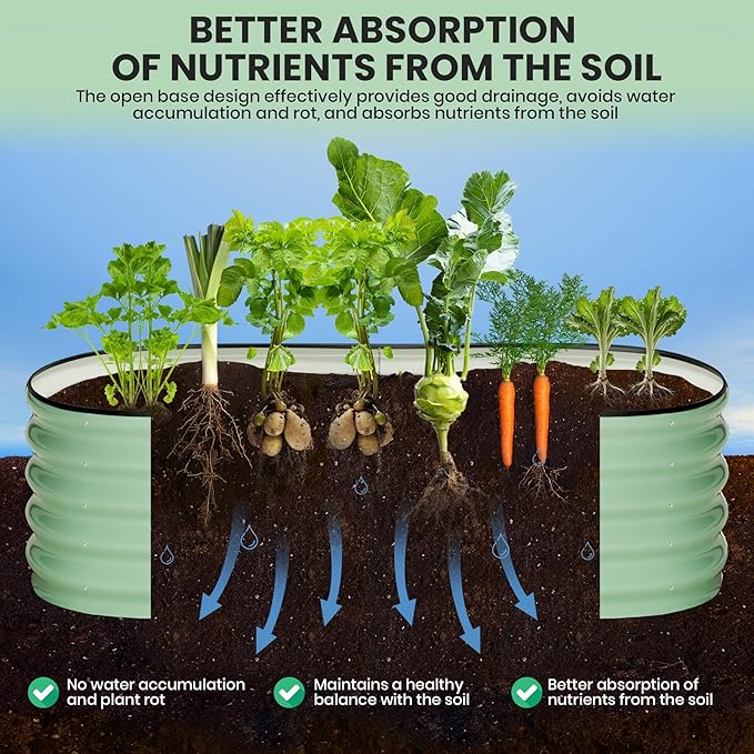 - π³ Unmatched Stability: Crafted with 0.5mm thick overlapping galvanized panels, reaching up to 1.8mm at the seams, our raised garden bed provides excellent strength and stability. The integrated screw fastening edge and unique oval form ensure it remains solid and secure, even when fully planted.