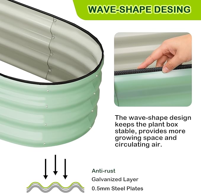 - π³ Unmatched Stability: Crafted with 0.5mm thick overlapping galvanized panels, reaching up to 1.8mm at the seams, our raised garden bed provides excellent strength and stability. The integrated screw fastening edge and unique oval form ensure it remains solid and secure, even when fully planted.