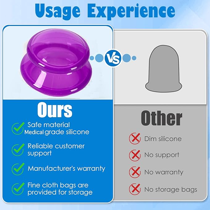 • Classic Cupping Therapy No Side Effect: 5 minutes of cupping therapy is equivalent to half an hour of deep massage. Good for improving blood circulation and detoxify the body.