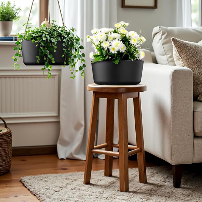 10.7 Inch Hanging Planter for Outdoor Indoor Plants,2 Pack Hanging Flower Pots with Drain Holes for Garden Home Decor Use (Black)