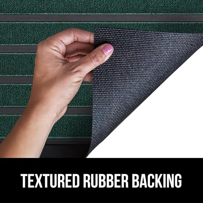 GORILLA GRIP 100% Waterproof All-Season WeatherMax Doormat US Designed Natural Rubber, Stain and Fade Resistant, Low Profile Indoor Outdoor Door Mats, Easy Clean Patio Mat, 17x29, Green Stripe