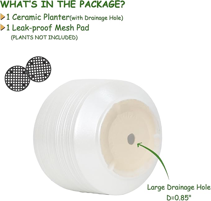 • 【Drainage Hole for Indoor & Outdoor Use】:Built-in drainage hole helps prevent root rot and supports healthy growth in large houseplants. Works as both an indoor ceramic planter and an outdoor pot for patio, garden, or balcony setups.