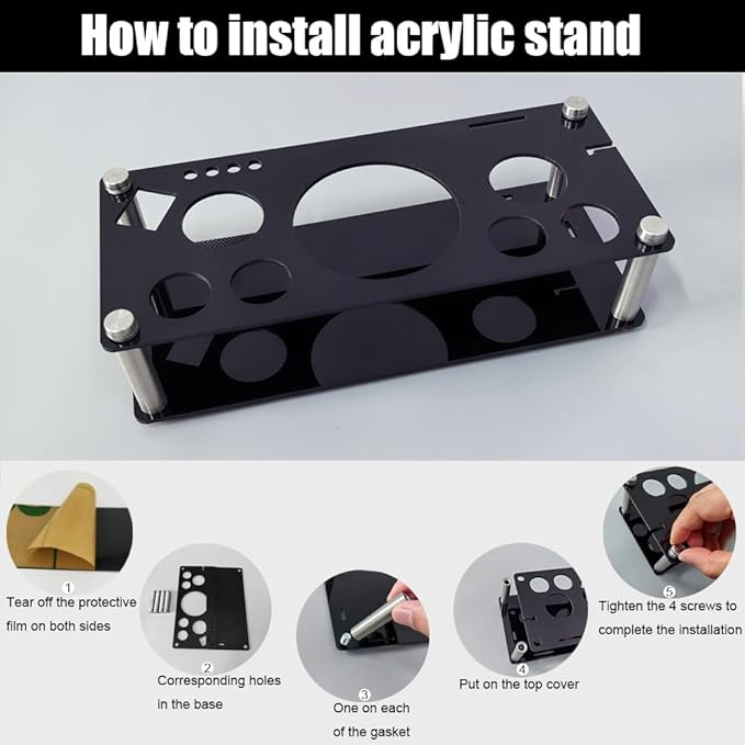 • The material of the stand is acrylic, and the 4 columns are stainless steel.