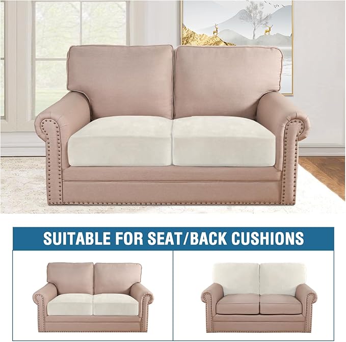 H.VERSAILTEX Velvet Stretch Couch Cushion Cover Plush Cushion Slipcover for Chair Loveseat Sofa Cushion Furniture Protector Seat Cushion Sofa Cover (2 Piece Medium Sofa Cushion Covers, Porcelain)